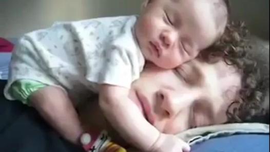 Babasının Kafasının Üstünde Uyuyan Tatlı Bebek